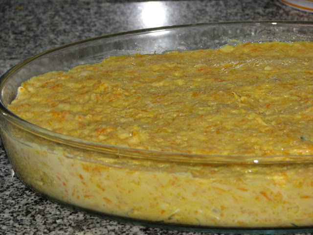 Este bacalhau não fui eu que fiz, comi em casa de uma amiga e pela receita que ela me deu é um aproveitamento que resulta tipo espiritual, ela usou menos cenoura e juntou outro tanto de batata que tinha cozida de sobra.