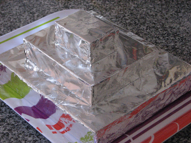 Montei este bolo com umas placas tipo esferovite, mas mais grossas, forradas de papel de alumínio.